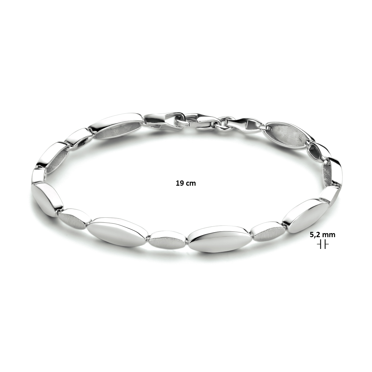 Gerhodineerd 925 zilveren armband uitgevoerd met een poli/matte afwerking en een stevige karabijn sluiting. De armband heeft een breedte van 5.2mm en een draaglengte van 19cm.