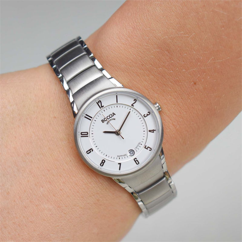 Dit Boccia horloge heeft een Titanium kast met een diameter van 29 mm en is voorzien van een Titanium band. In de kast bevindt zich een Miyota kwaliteitsuurwerk en is afgewerkt met Saffierglas.