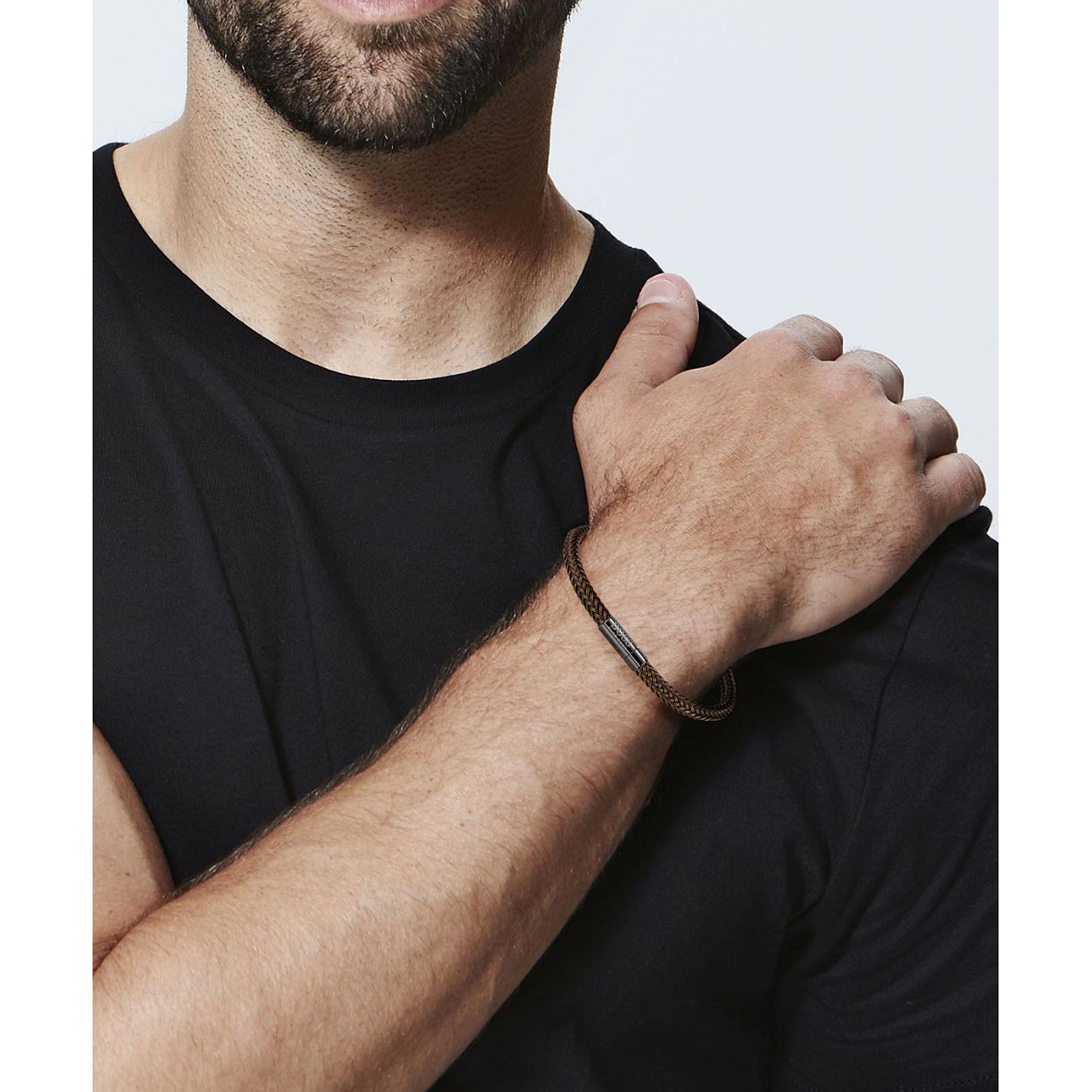 Deze armband van BOSS uit de Rope serie met artikelnr. HBJ1580099M is een trendy armband voor de BOSS klant. De herenarmband is een stalen band met een gevlochten siliconen laagje erover met een lengte  van 19cm en een doorsnee van 6,7mm. De armband is bruin van kleur, heeft een zwart stalen sluiting en is zeker leuk te combineren met meerdere BOSS armbanden.