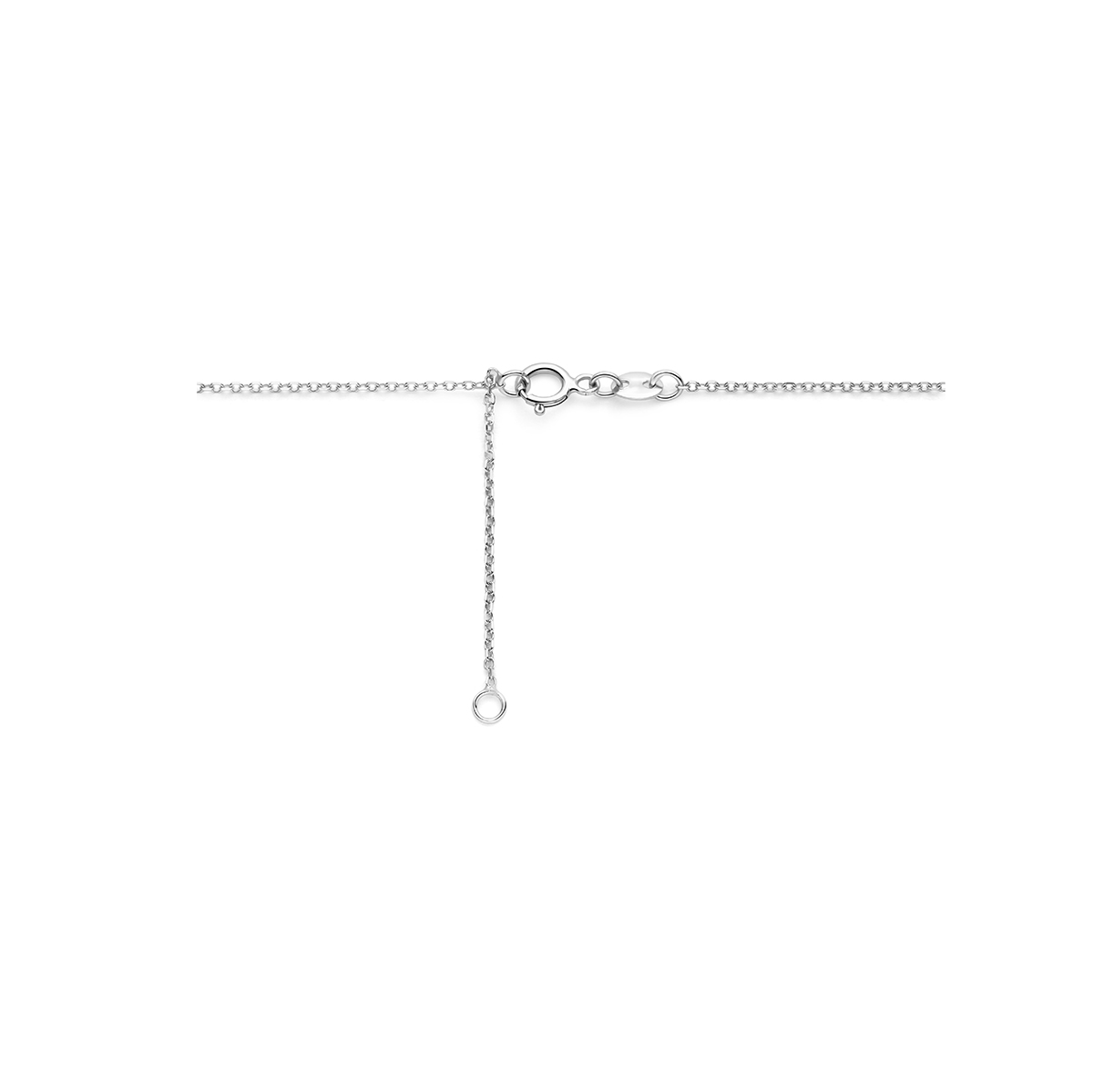 14k Witgouden collier uitgevoerd met een balkje en diamanten. Het collier heeft draaglengtes van 42 en 45 cm. De schakelbreedte is 1.0mm.