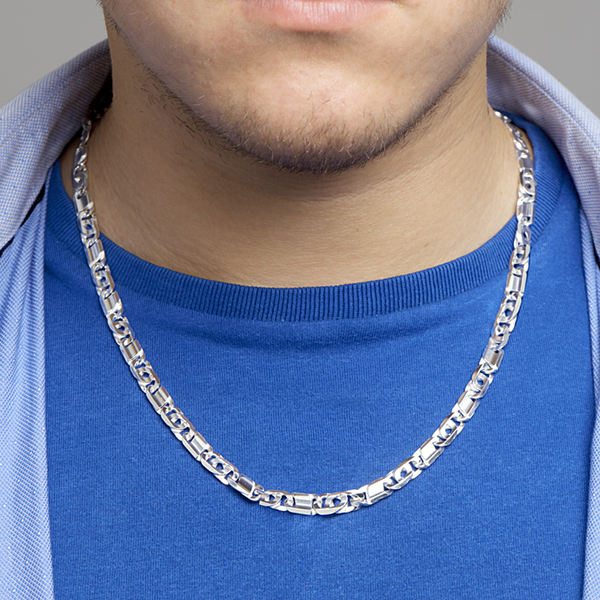 Beschrijving: Zilveren collier met arendsoog schakel.