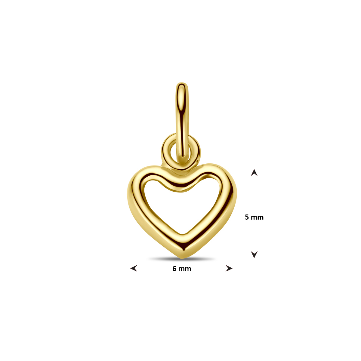 14k Geelgouden hanger uitgevoerd met een hart. De hanger heeft een totale hoogte van 11mm.