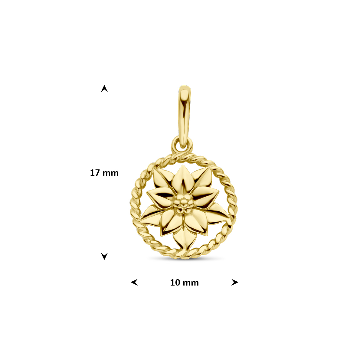 De Geelgouden Geboorte Bloem Hanger, modelnummer 4028988, is een prachtige gouden bedel, glanzend en rond van vorm. Met een hoogte van 17 mm en een diameter van 10 mm, is deze goudkleurige charme perfect als aanvulling aan een ketting of armband. Draag hem solo of combineer met andere bedels voor een persoonlijke touch.