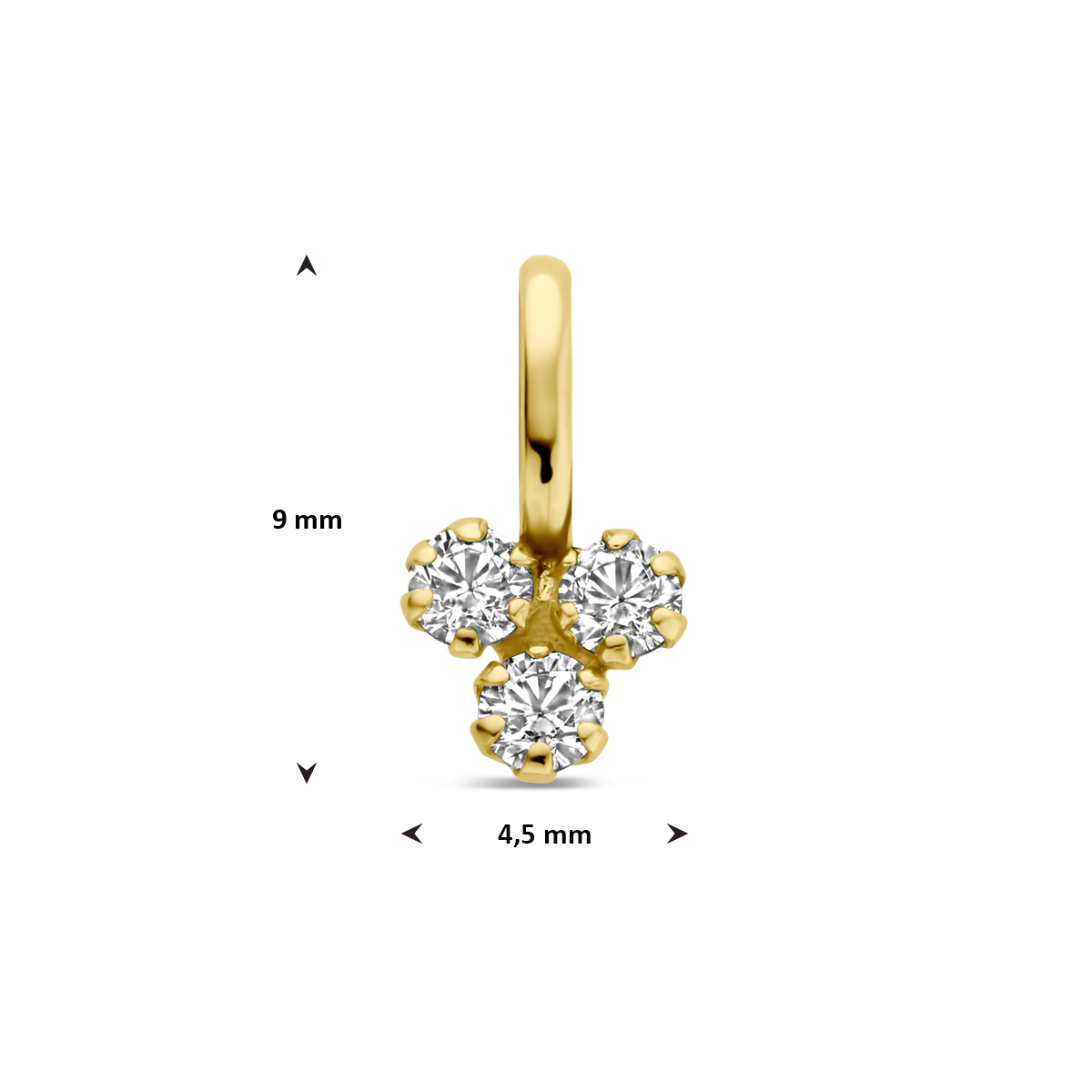 De Geelgouden Hanger met Zirkonias, modelnummer 4033219, is een verfijnd sieraad. Deze gouden bedel heeft een breedte van 4,5 mm en een gewicht van 0,17 gram. Het bevat een briljant geslepen zirkonia, wat zorgt voor een schitterende glans. Perfect om te dragen aan een elegante ketting voor een verfijnde look bij elke gelegenheid.