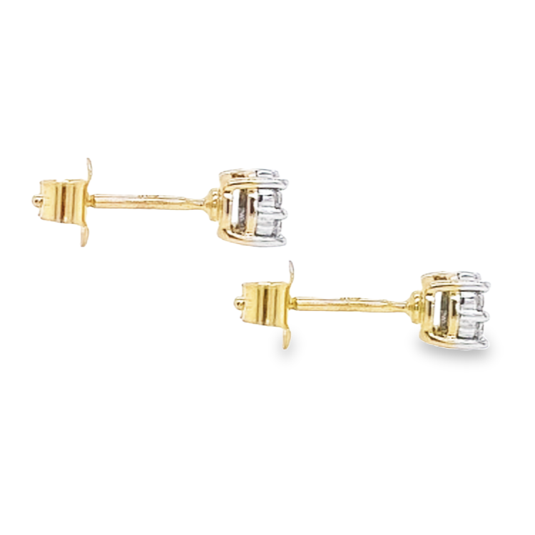 Gouden Bi Color Oorstekers met Illusion Zetting 0.18 ct