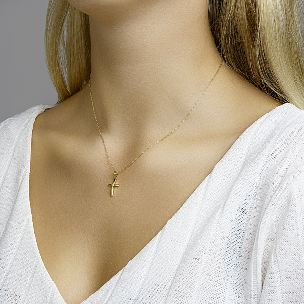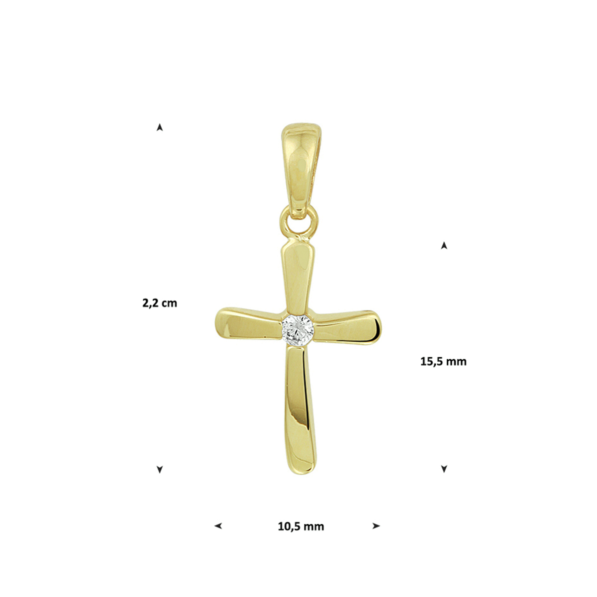 Beschrijving: Geelgouden hanger met een kruis uitgevoerd met een schitterende zirkonia