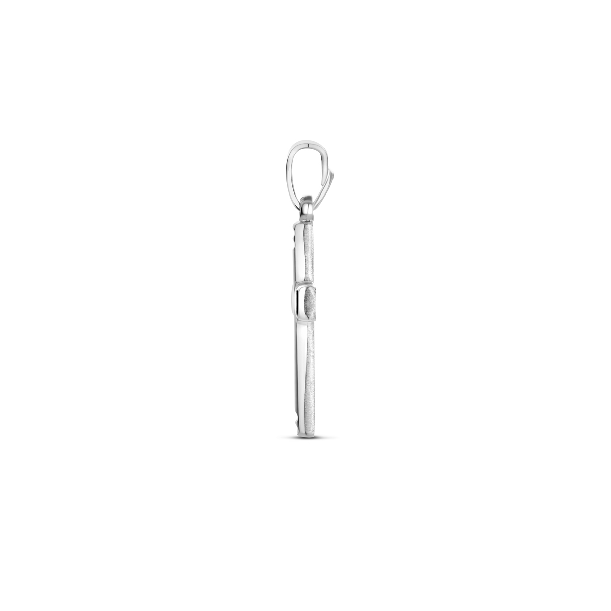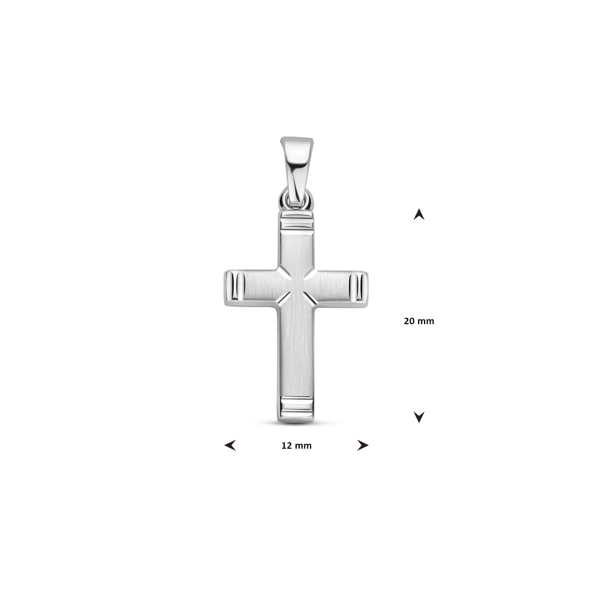 Gerhodineerd 925 zilveren hanger in de vorm van een kruis. De hanger heeft een drie delige bewerking gematteerd, gepolijst en gediamanteerd. De hanger heeft een totale hoogte van 24mm en een afmeting van 20x12mm.