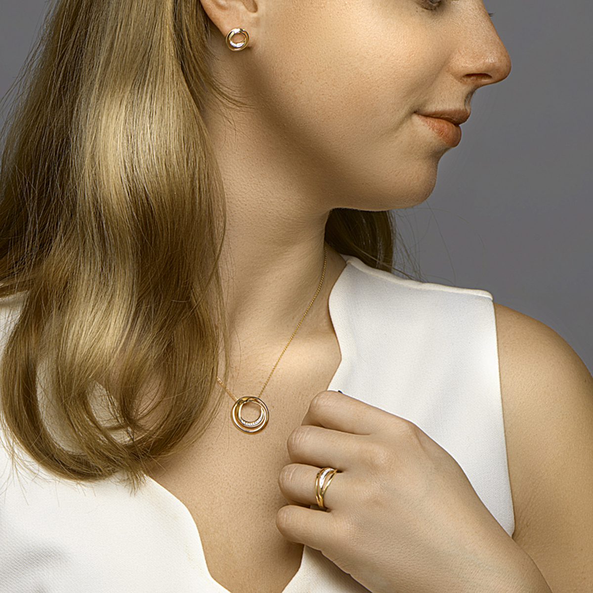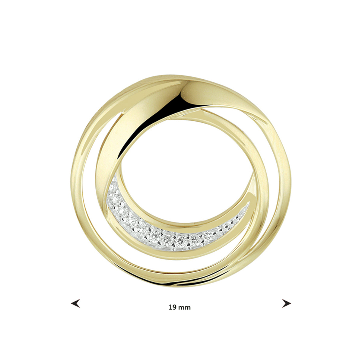 Geelgouden hanger uitgevoerd met een schitterende diamant rij. De hanger heeft een diameter van 19mm.