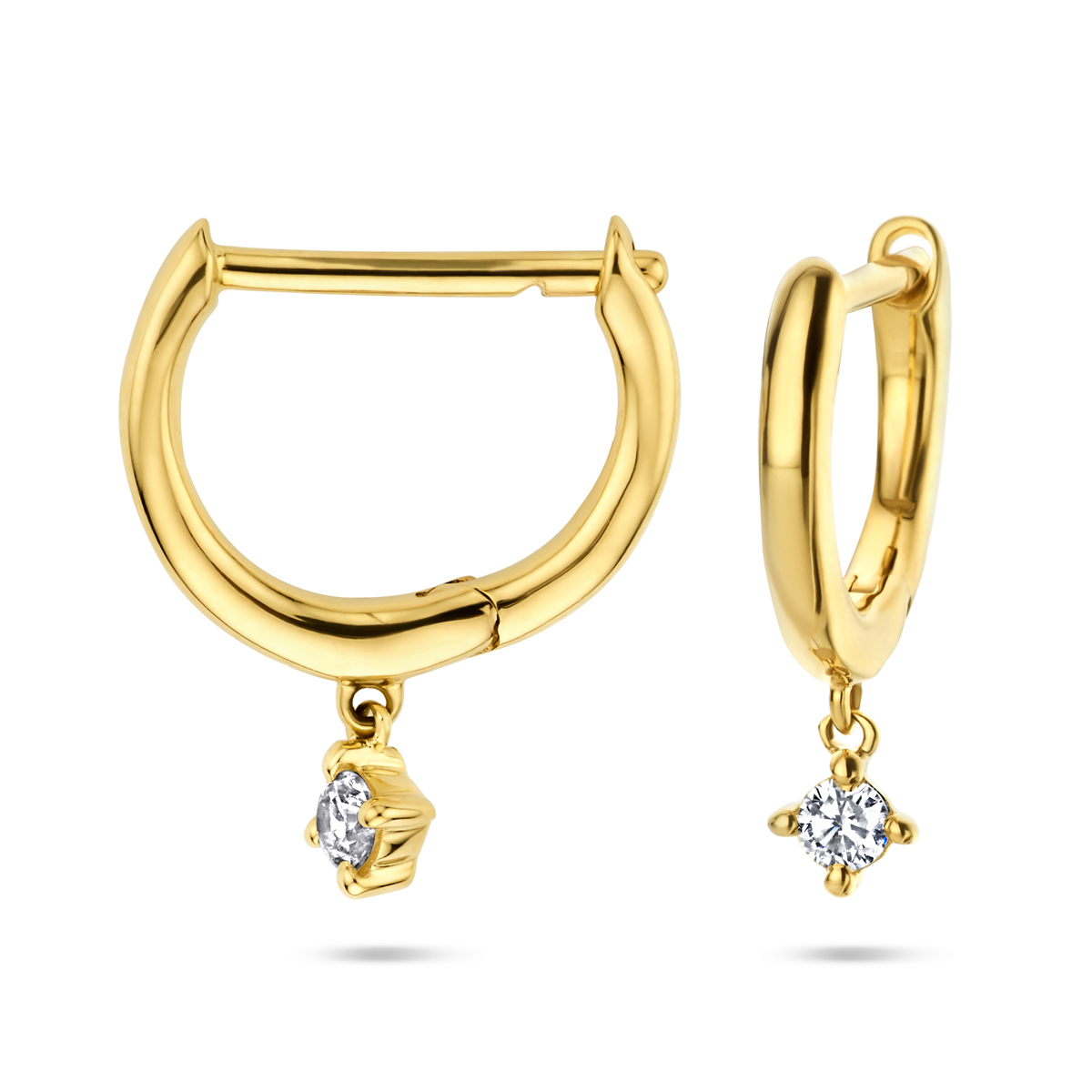 14k Geelgouden klapoorringen uitgevoerd met diamant. De klapoorringen hebben een diameter van 14.6mm.