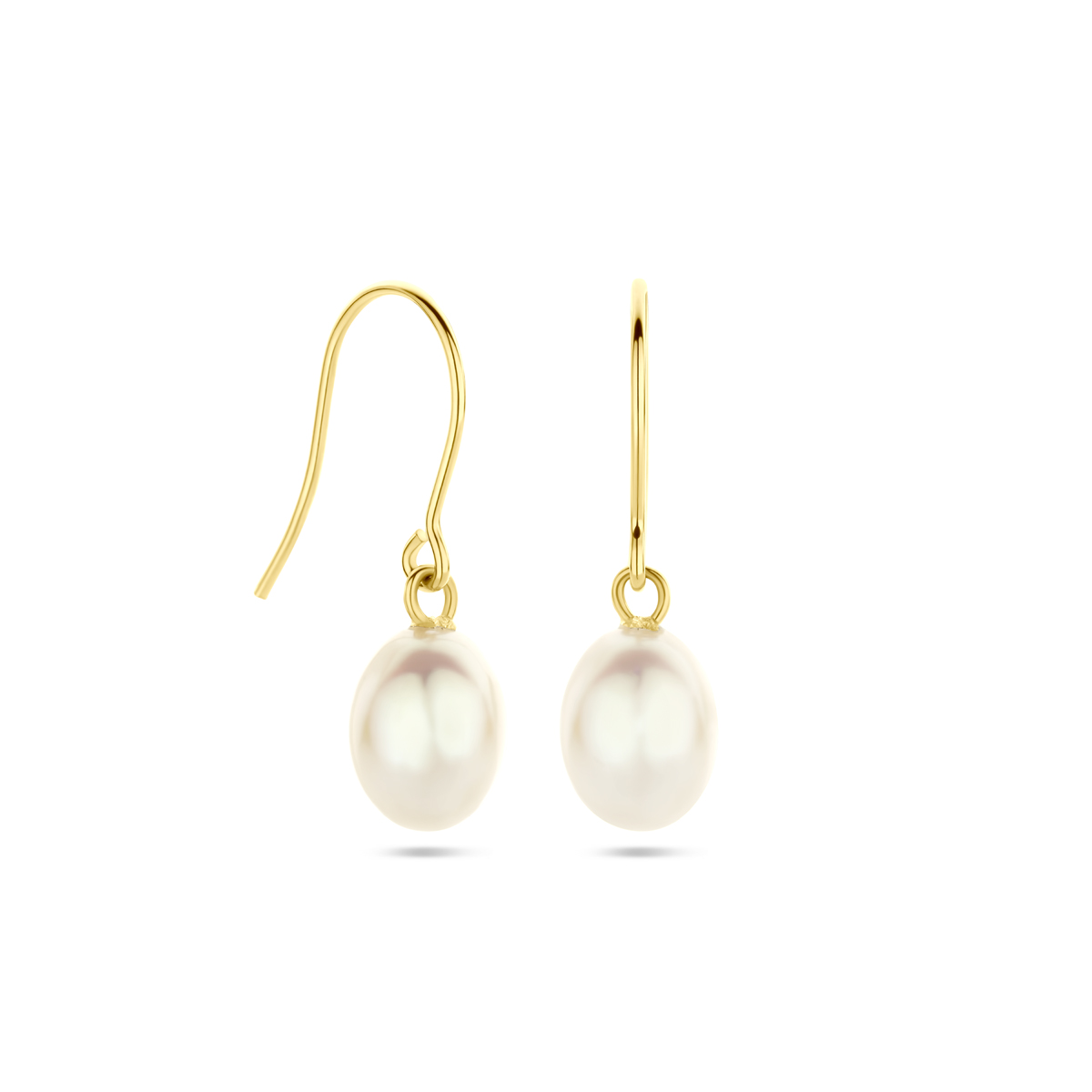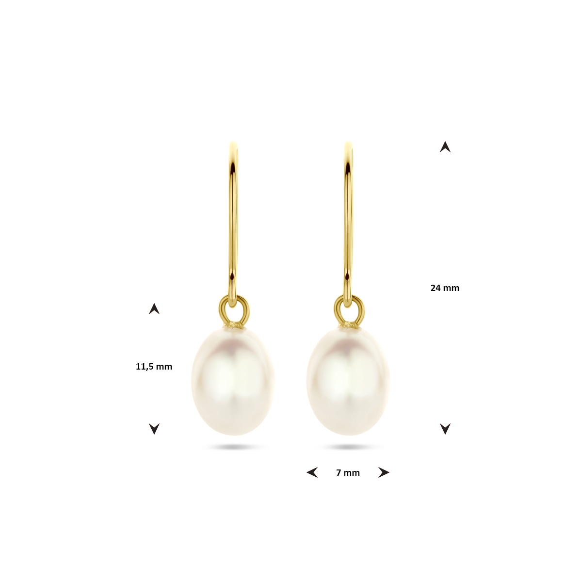 14k Geelgouden oorhangers uitgevoerd met parel. De oorhangers hebben een totale hoogte van 24mm.