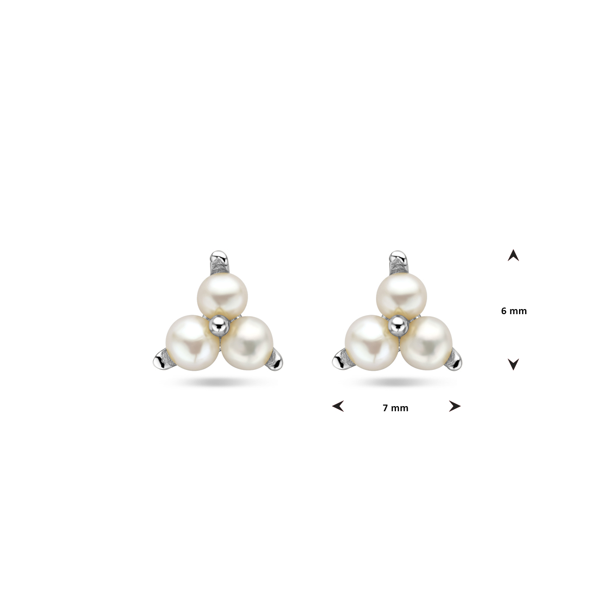 Gerhodineerd 925 zilveren oorknoppen uitgevoerd met zoetwaterparels. De oorknoppen hebben een afmeting van 6x7mm.