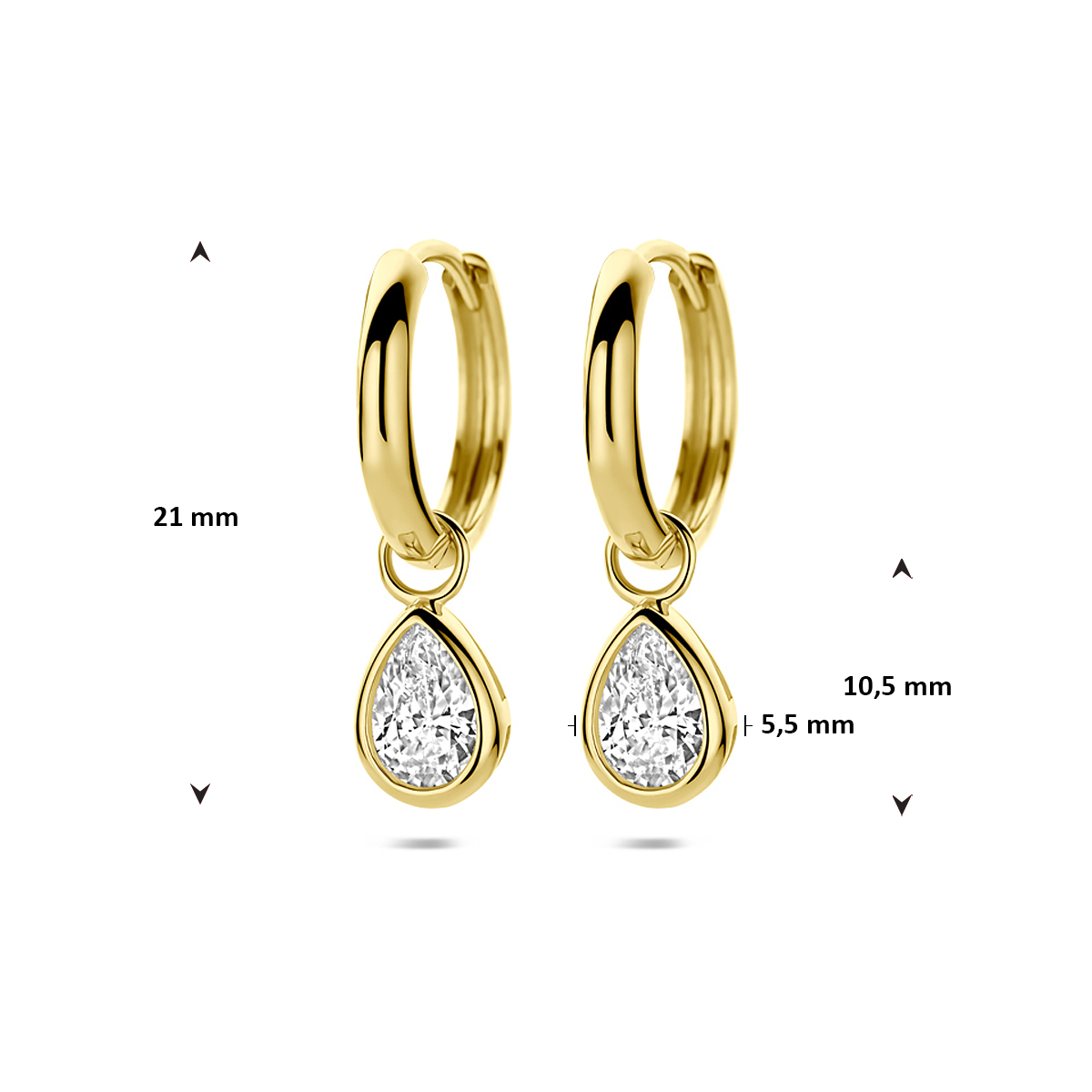 14k Geelgouden oorringen met zirkonia. De oorringen hebben een totale hoogte van 21mm.