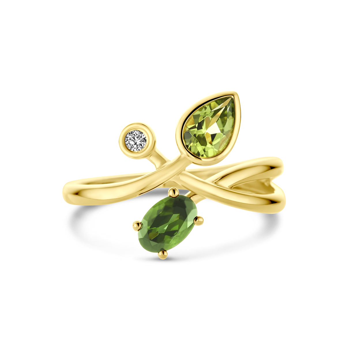 Gouden Ring met Groene Toermalijn, Peridot en Diamant
