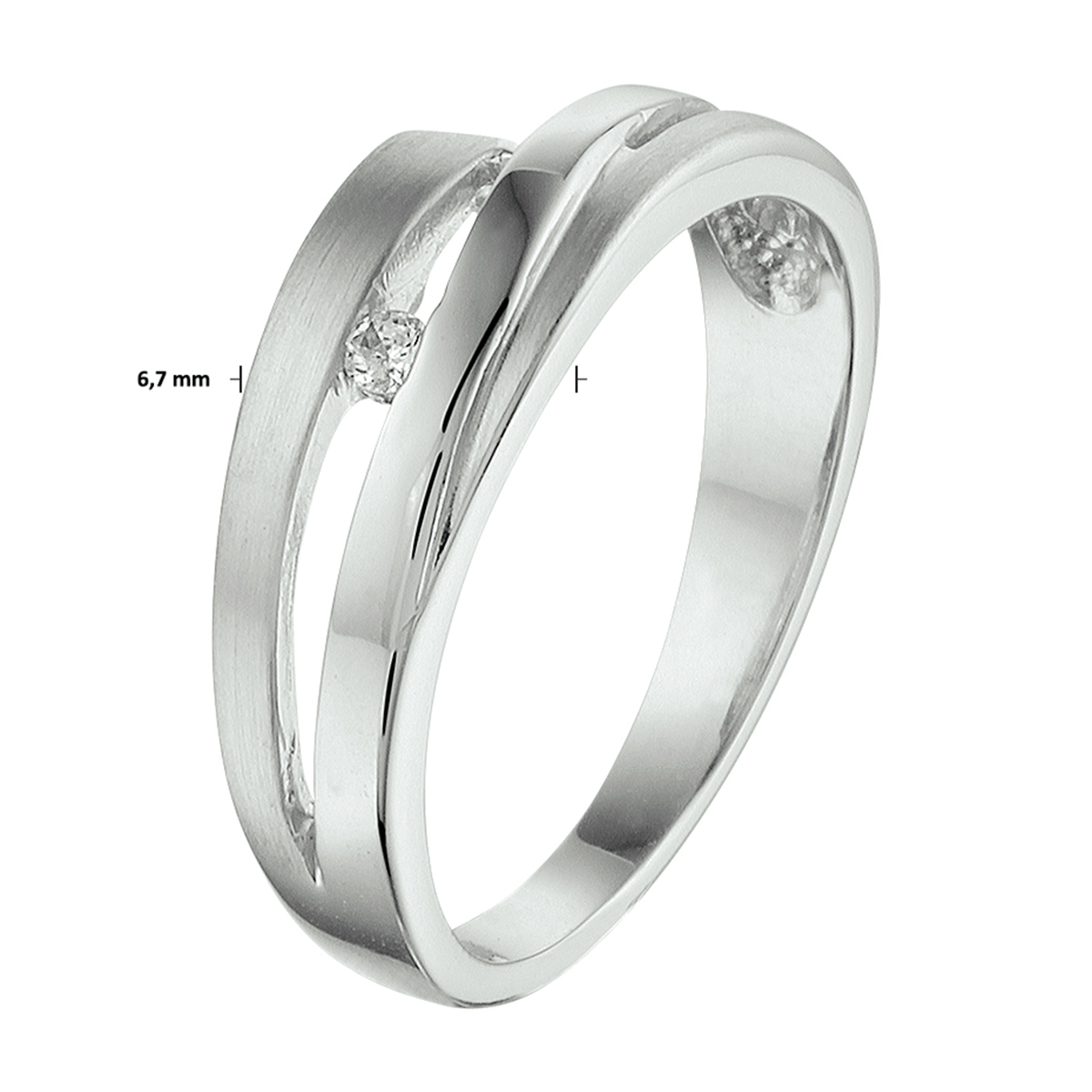 Gerhodineerd zilveren ring met zirkonia en een poli/matte afwerking.
