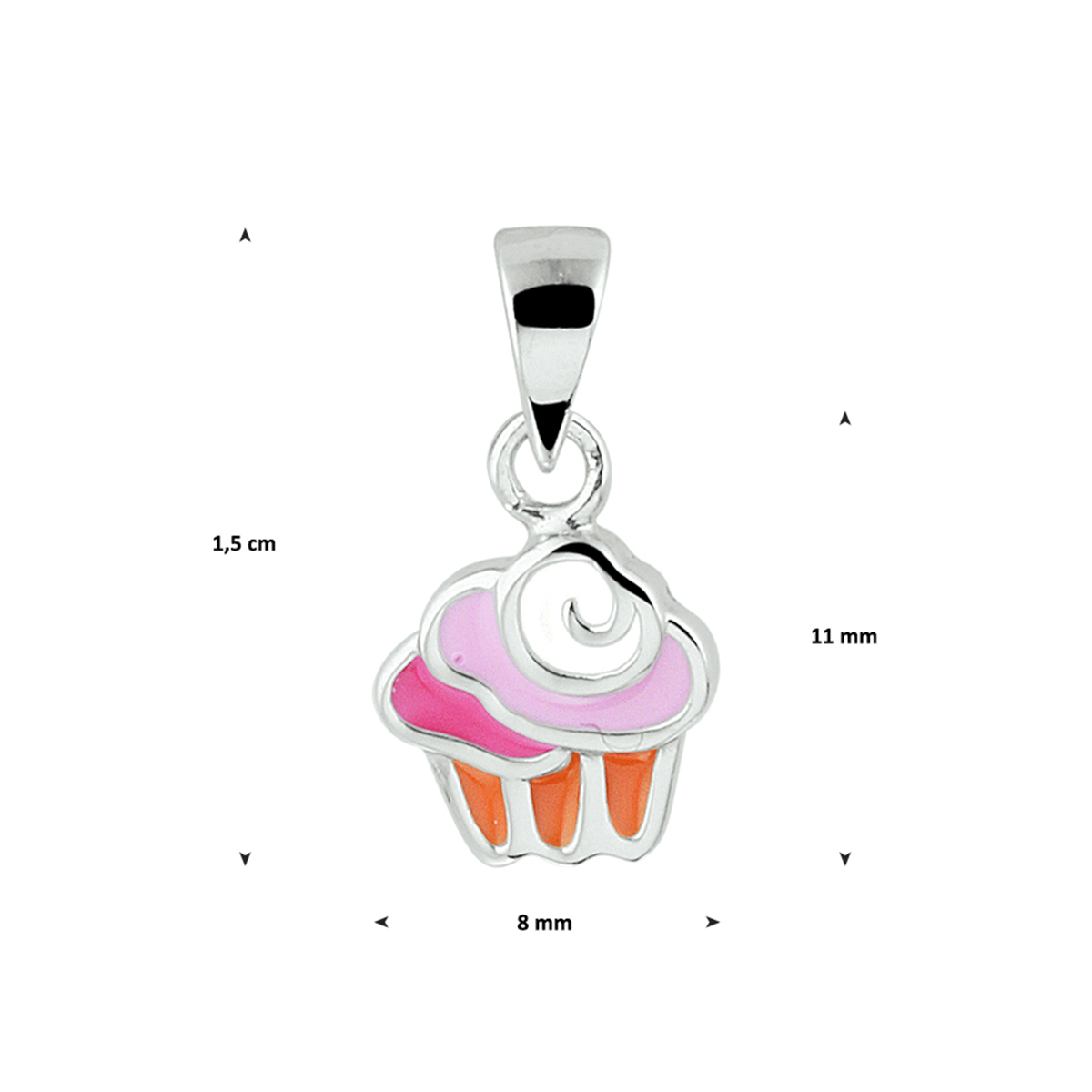 Beschrijving: Super leuke gerhodineerd zilveren cupcake hanger uitgevoerd met verschillende kleuren emaille. De hanger heeft een afmeting van 15x8mm. U kunt deze hanger combineren met bijpassende sieraden uit onze collectie.
