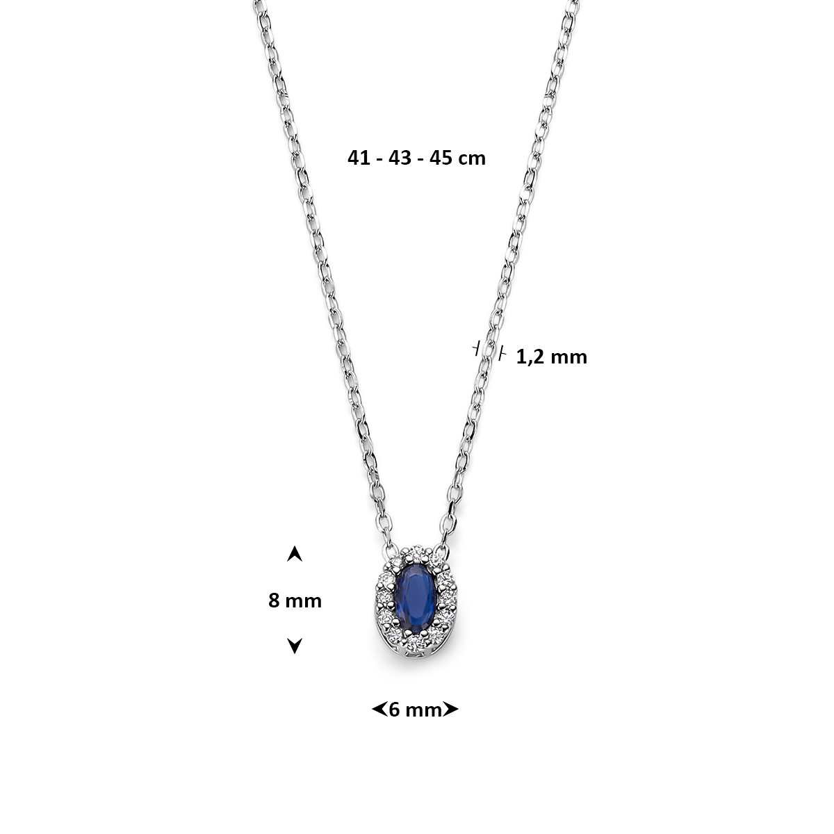 Zilver Gerhodineerd Collier met Synthetische Saffier en Zirkonia