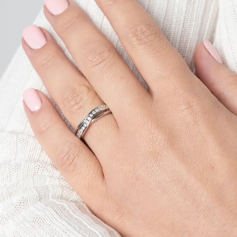 Zilver Gerhodineerde Cross-Over Ring met Zirkonia R101-58