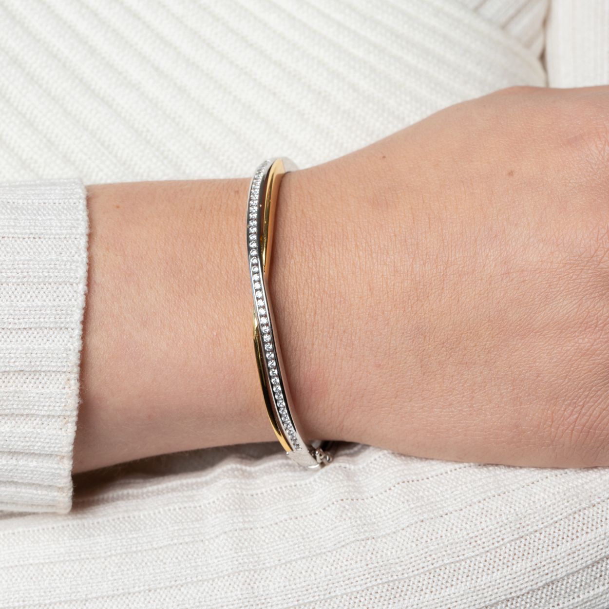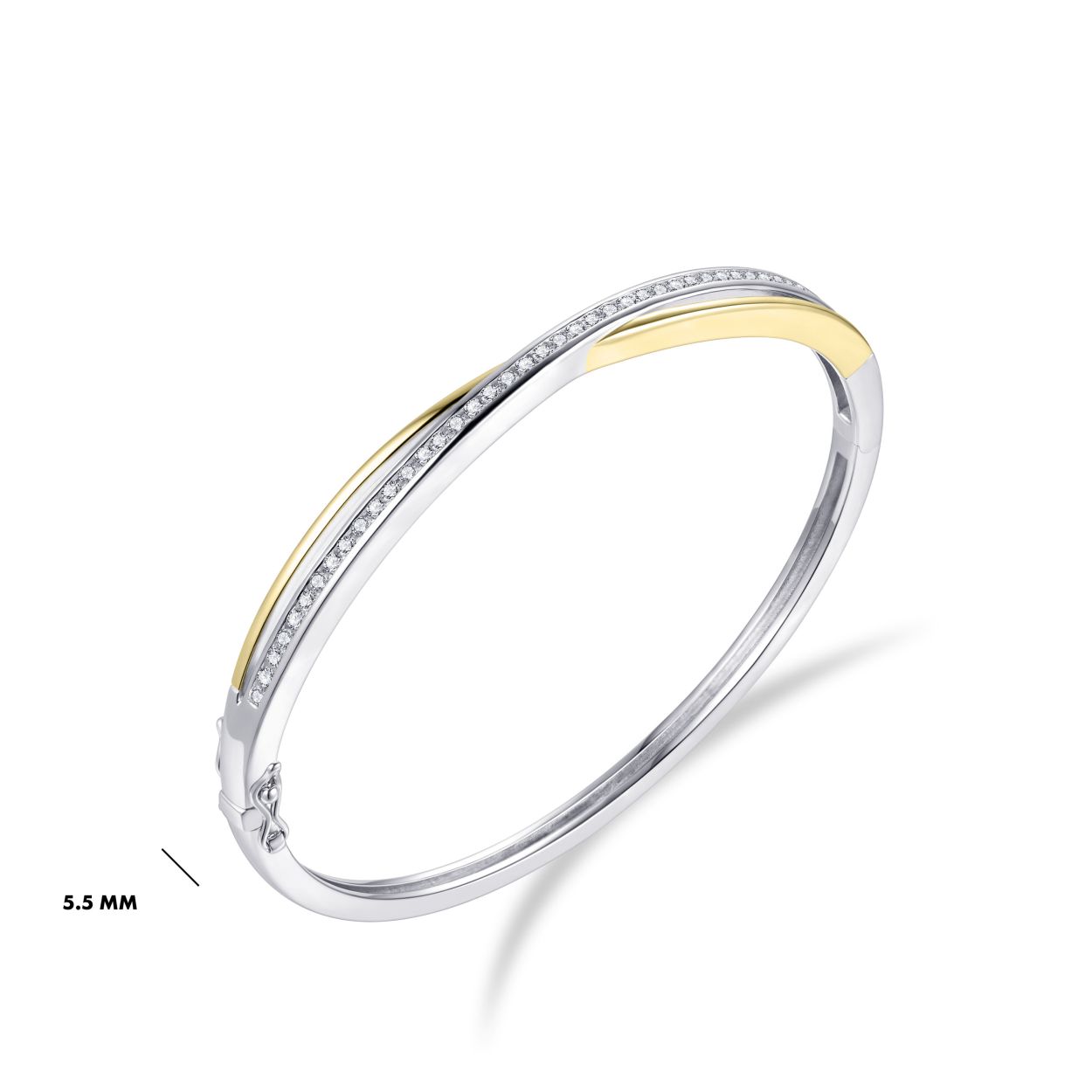 Zilveren Bangle Cross Over met Vergulde Baan en Zirkonia SB17Y-64