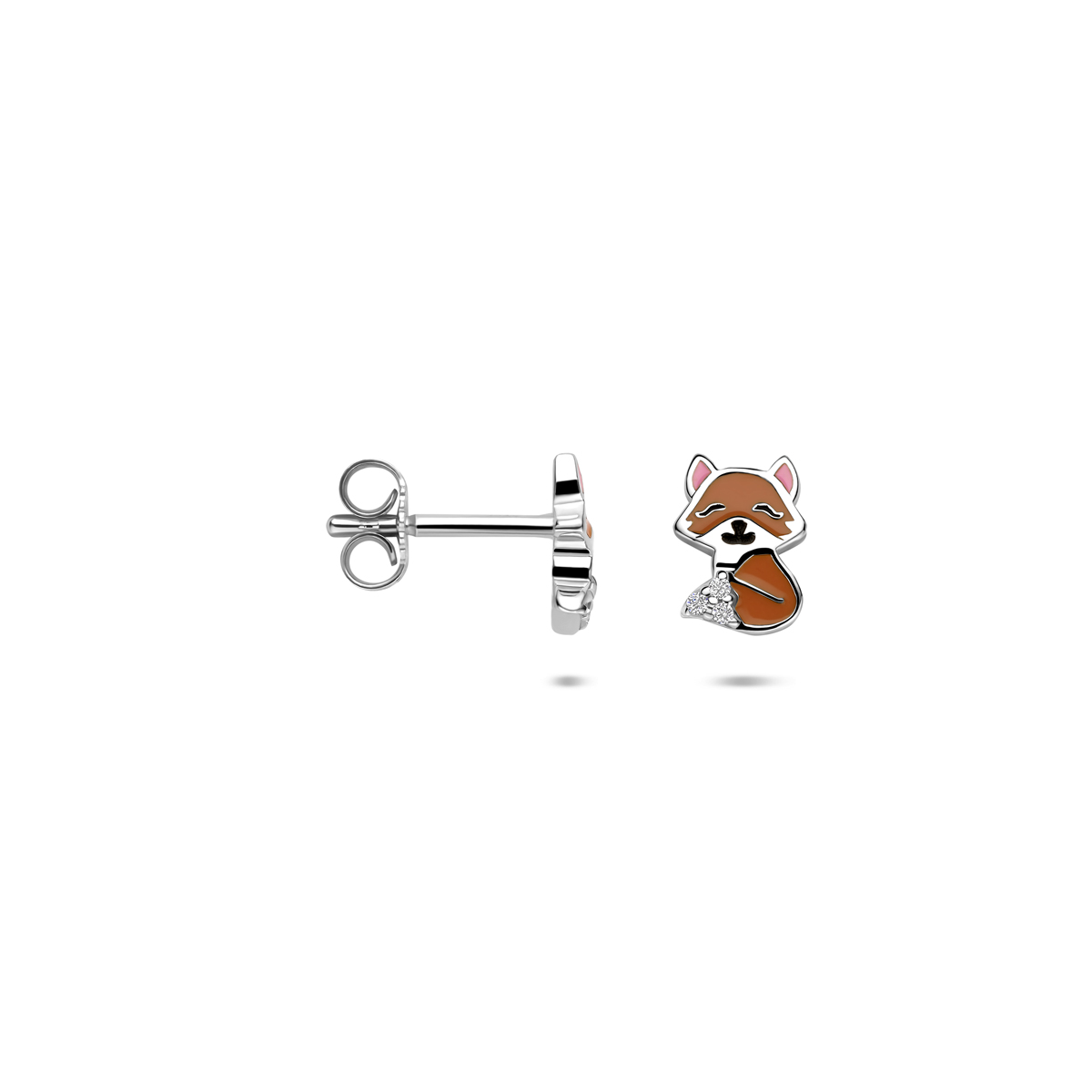 Gerhodineerd 925 zilveren oorknoppen uitgevoerd met een emaille vos en zirkonia. De oorknoppen hebben een afmeting van 7.5x5.5mm.